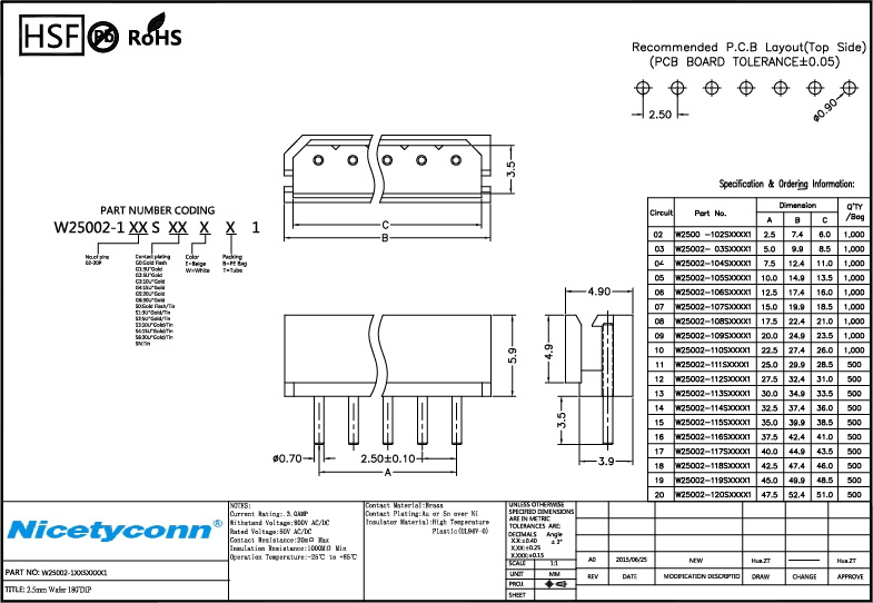 2.5 mm Pitch 180 Degree Straight Type Wafer |