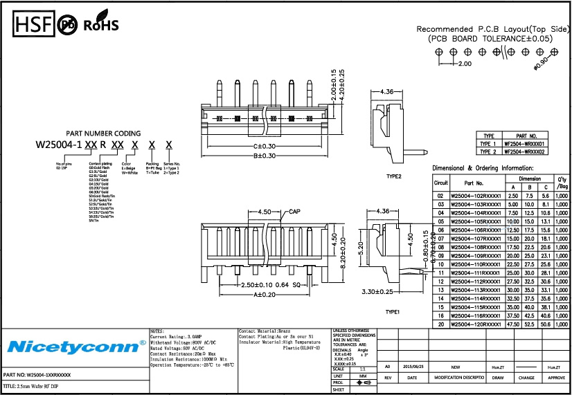 1. 2.5 mm Pitch 90 Degree Right Angle Wafer