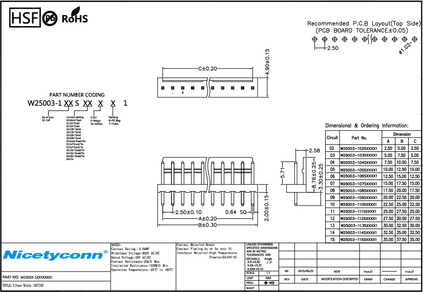 PH 2.5 mm 180 Degree Straight Type Wafer |