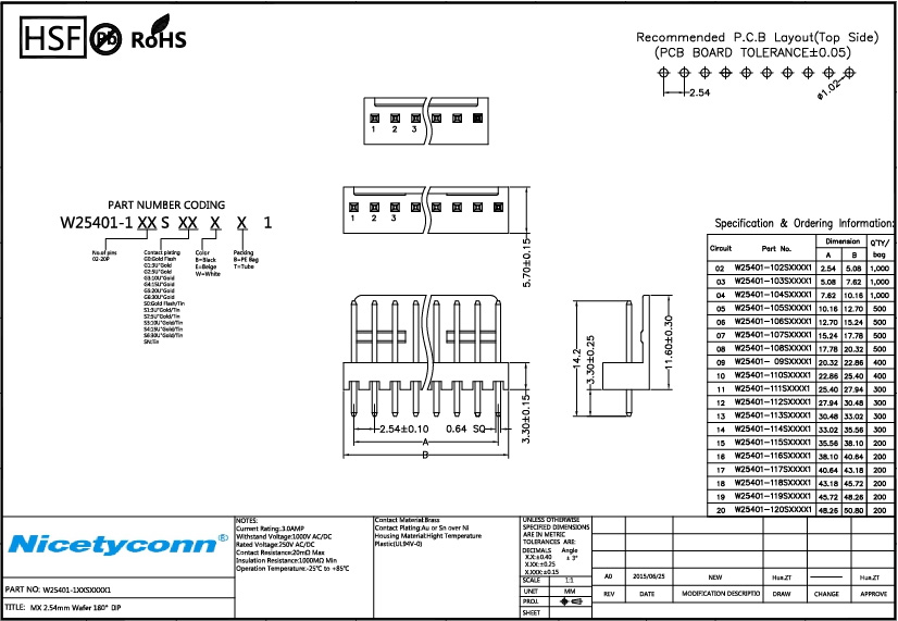 2.54 Pitch 180 Degree Straight Type Wafer |