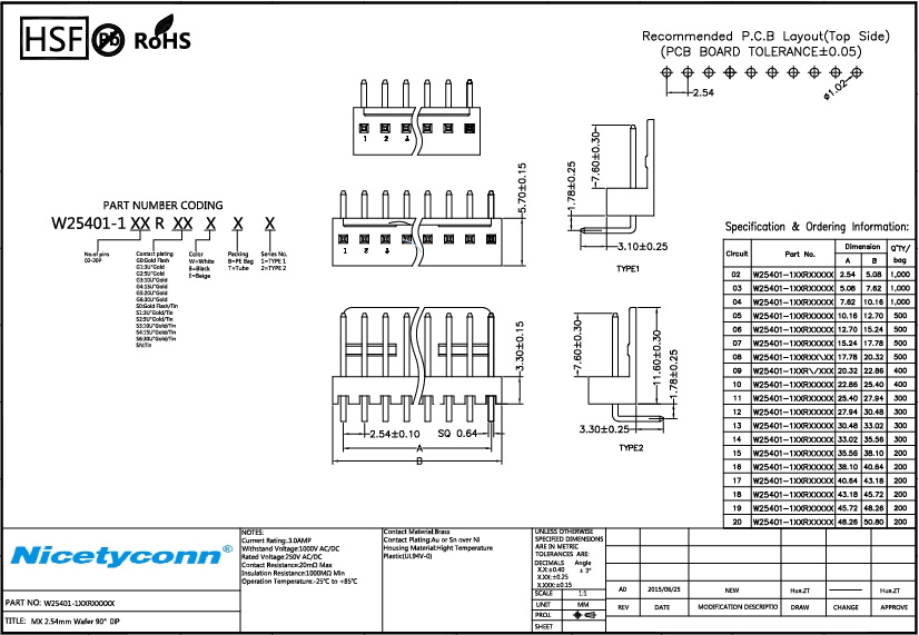 1. 2.54mm 90 Degree Right Angle Wafer