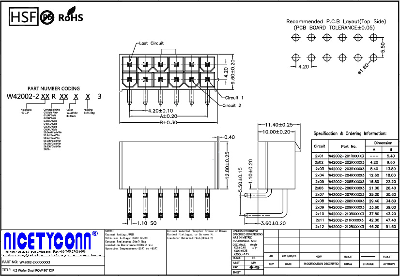 4.2mm Pitch Dual Rows 180 Degree DIP Wafer Connector |