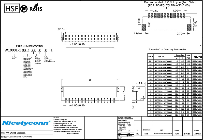 1.0 mm Pitch 90 Degree SMT Wafer Connector |
