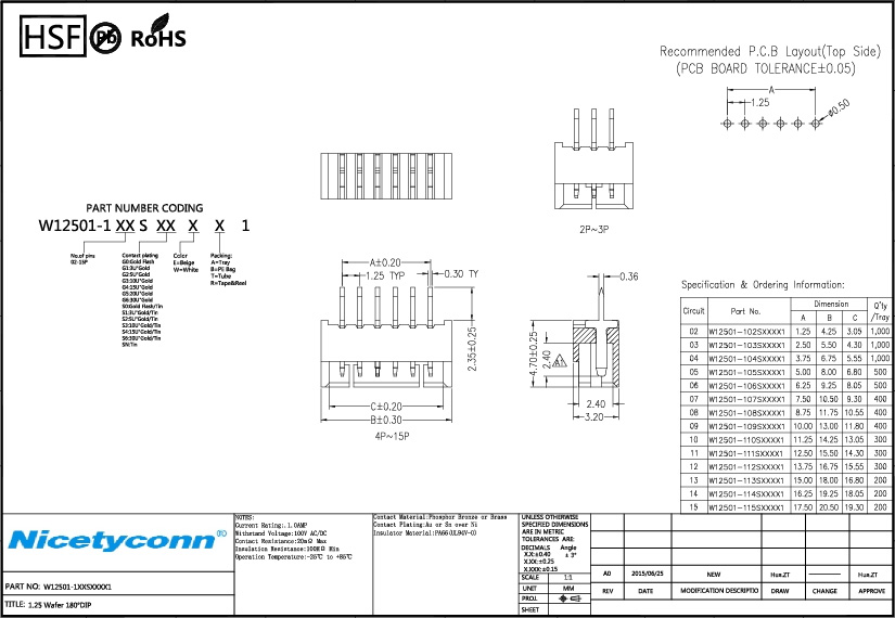 1. 1.25 Pitch Straight Type Wafer Connector