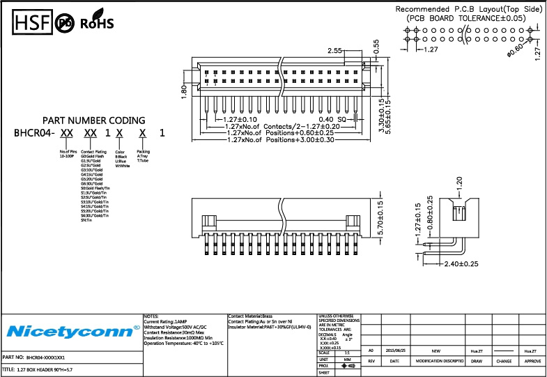 1.27 mm Pitch Right Angle Box Header Plug H=5.7 |