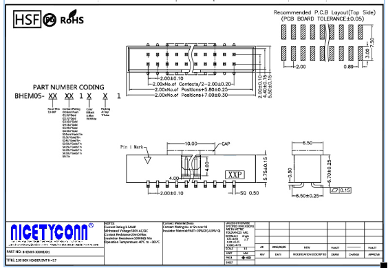 2.0 mm Pitch SMT Box Header Plug H=5.7 |