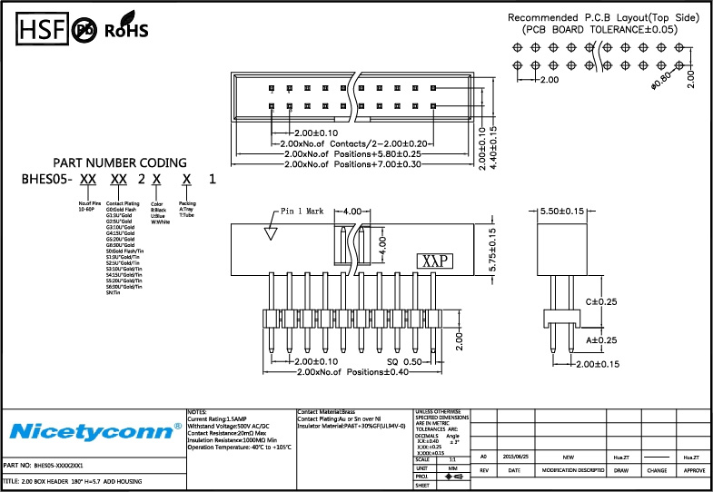 2.0 mm Pitch 180 Degree Box Header Add Plastic H=5.7