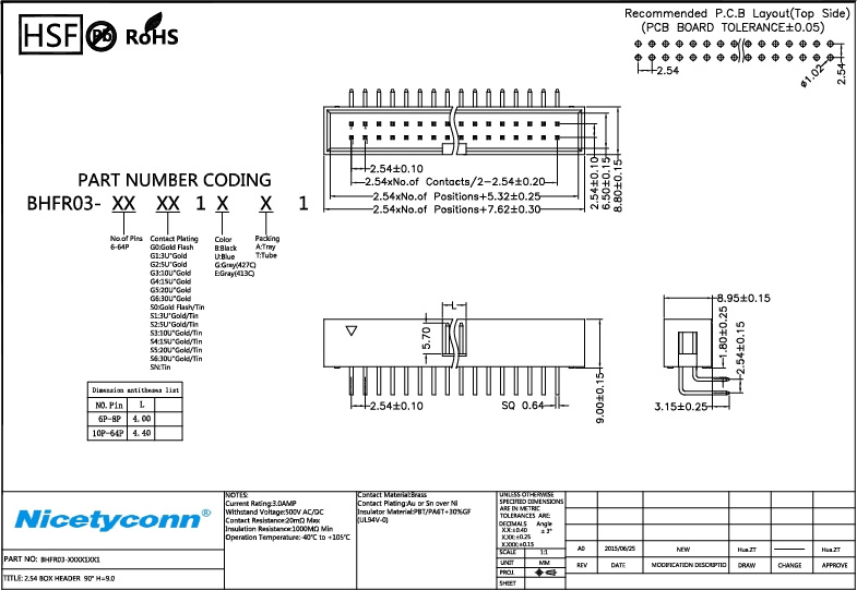 1. 2.54 mm Pitch Right Angle Box Header H=9.0
