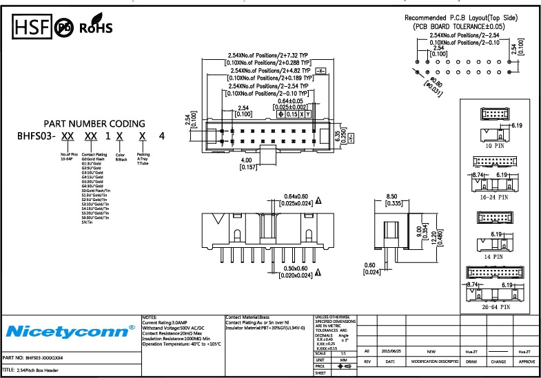 Contact Plating: Au or Sn over Ni