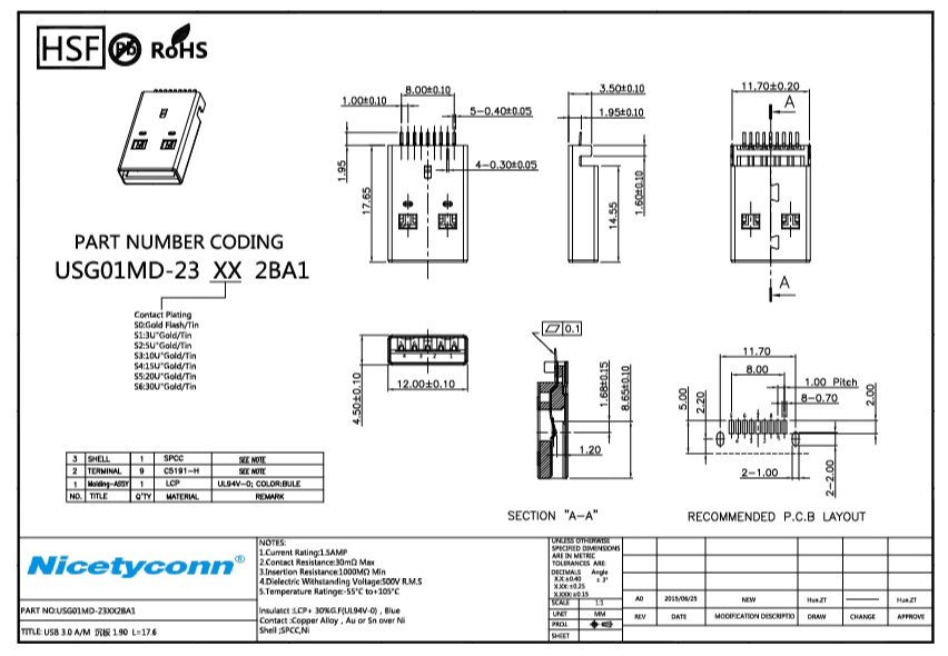 1. 3.0 A/M Solder Type 1.90 L=18.7 USB Plug