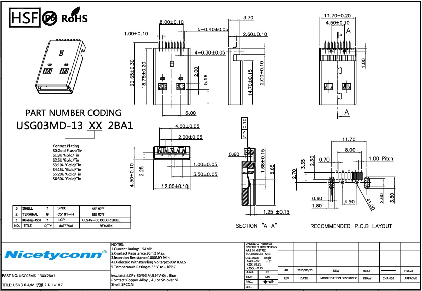 1. USB 3.0 mm A/M Connector