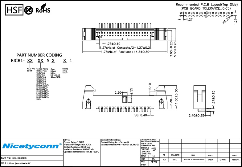Insulator Material: PA6T+30%G.F (UL94V-0) |