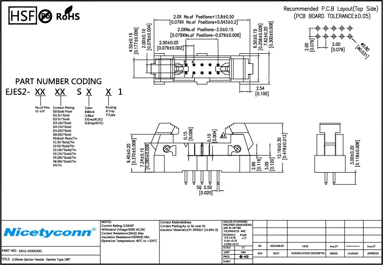 2.0 Pitch 180 Degree Samtec Type Ejector Header |