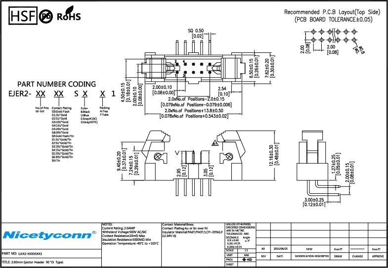 2.0 mm Pitch S Type Right Angle Ejector Header |
