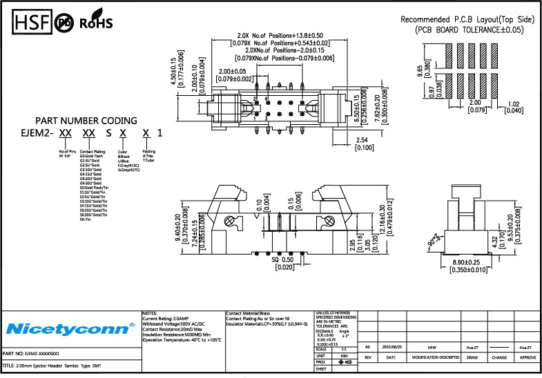 2.0 mm Pitch SMT Samtec Type Ejector Header |