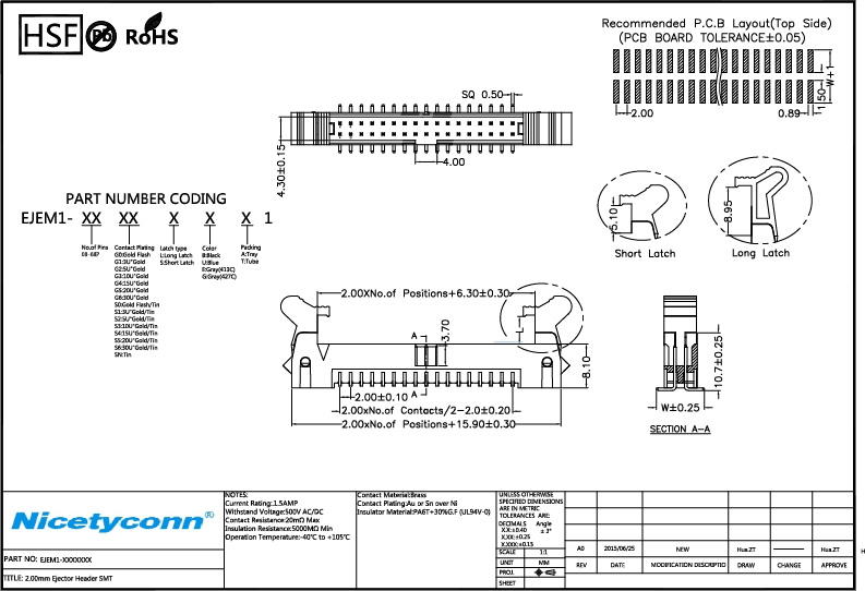 1. 2.0 mm Pitch SMT Ejector Header Connector