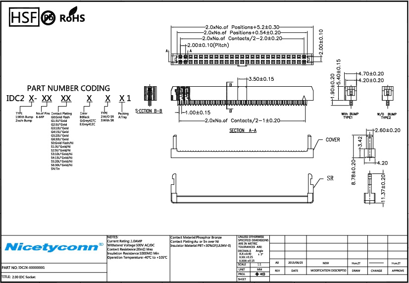 1. 2.0 mm Pitch Socket IDC