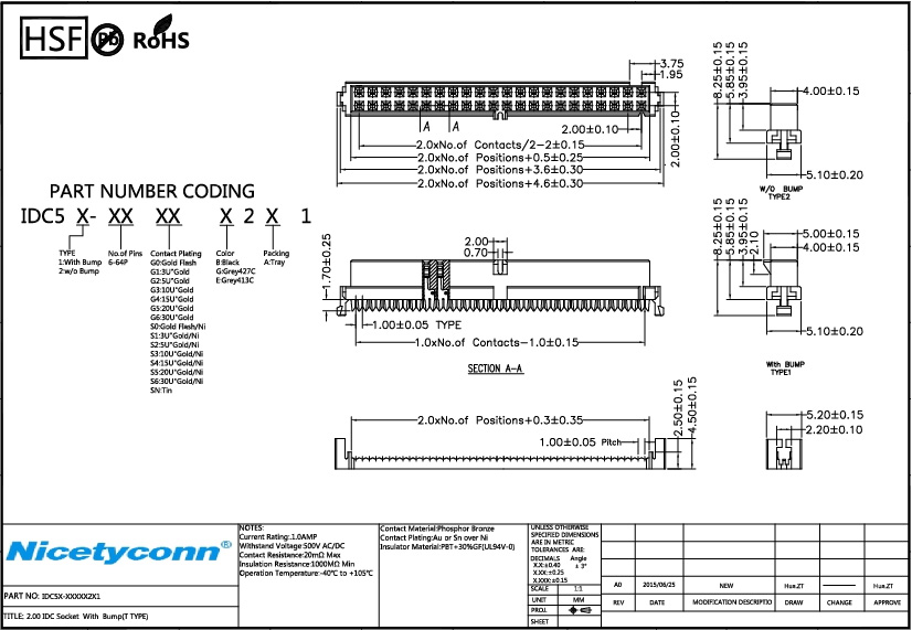 2.0 mm Pitch F Type IDC Socket Connector with Bump |
