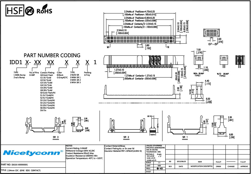 Insulator Material:PBT+30%G.F(UL94V-0) |