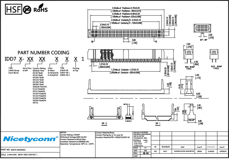 Contact Plating:Au or Sn over Ni