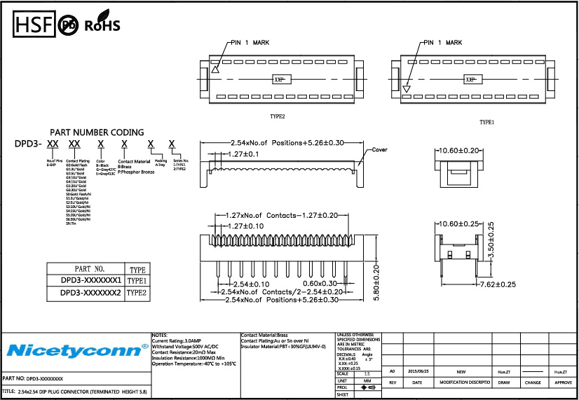 Insulator Material:PBT+30%G.F(UL94V-0) |