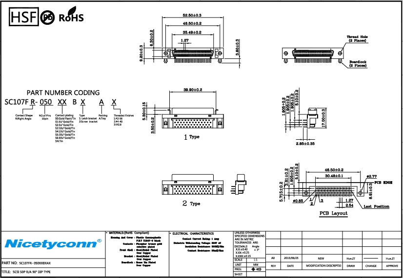 1. Cen Type 20 Pin Right Angle Metal Shell SCSI Conne
