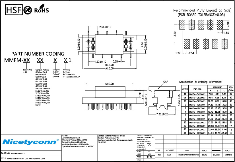 180 Degree SMT Without Latch Micro Match Socket Connector |