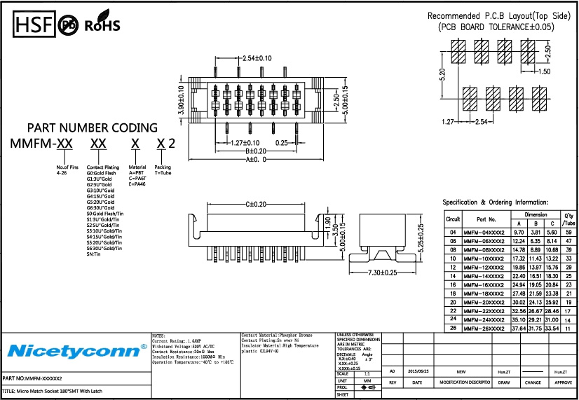 1. 180 Degree SMT with Latch Micro Match Socket Conne