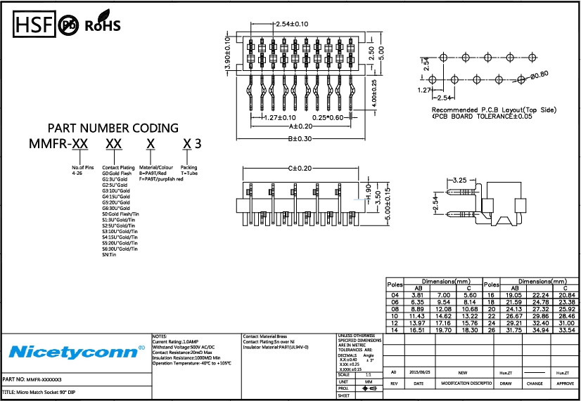 90 Degree DIP Micro Match Socket Connector Without Latch |